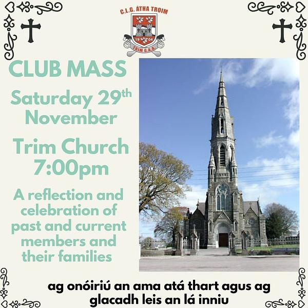 🔴🏐 CLG Átha Troim invite you to our annual Club Mass on Saturday 29th November, a special occasion dedicated to honouring and remembering our past members and their families.
