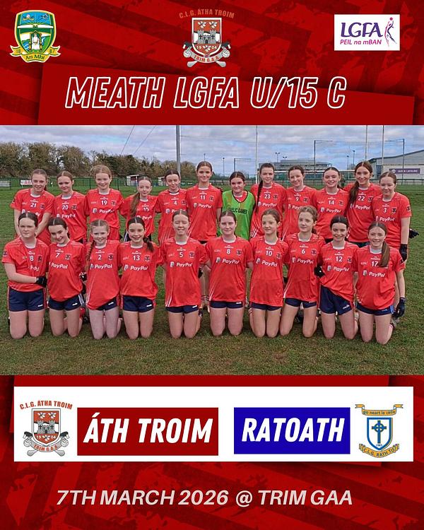 ❤️ Trim U 15 C made it two wins from two on Saturday afternoon in Trim against Ratoath. The girls showed great commitment and intensity, and got some excellent scores. This followed up from their victory away to St Colmcilles last weekend. Next up is an away game to Dunderrry. Well done to all the girls on a great performance
